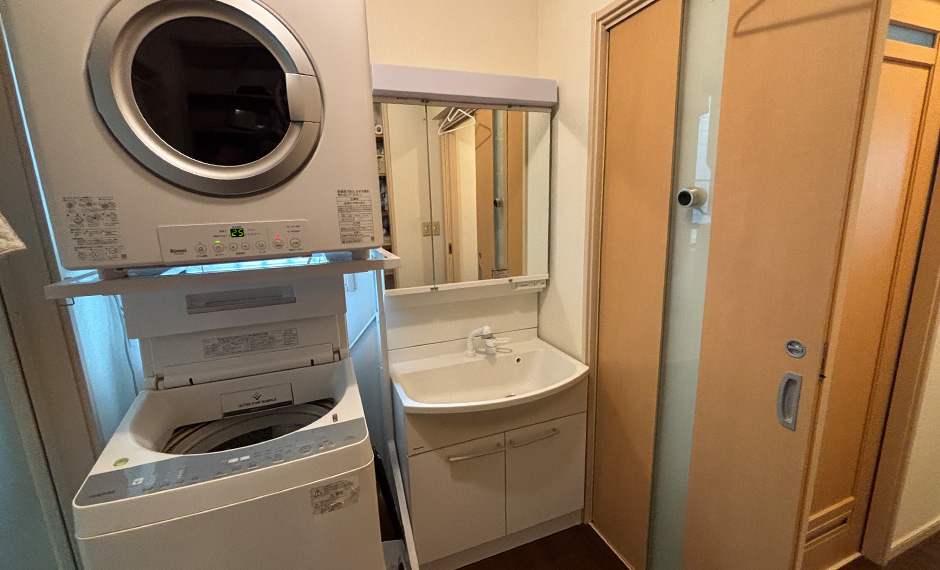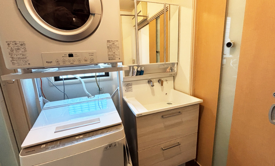 - 洗面台まわりのお手入れがしづらく、収納スペースも不足していたことから、使い勝手を重視した洗面化粧台への交換工事を行いました。