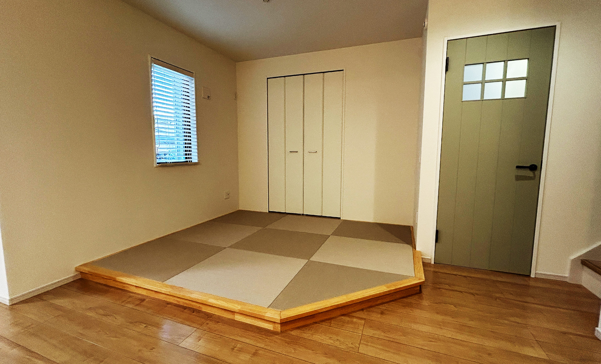 居室リフォーム事例 – 清水区 – リビング小上がり畳ルーム新設と木製建具交換