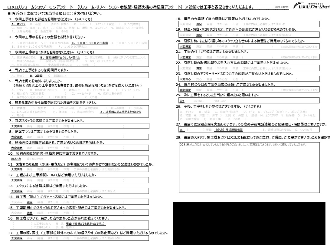 キッチンリフォーム後の お客様の声