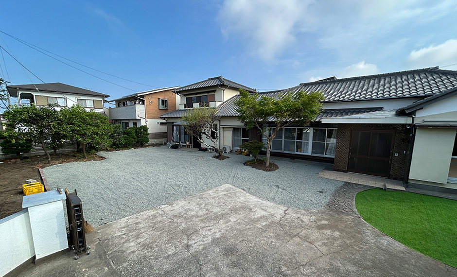 また、お庭は植木などを整理して複数台の車を停められるようにし、すっきりとした印象に仕上げています。 - 工期