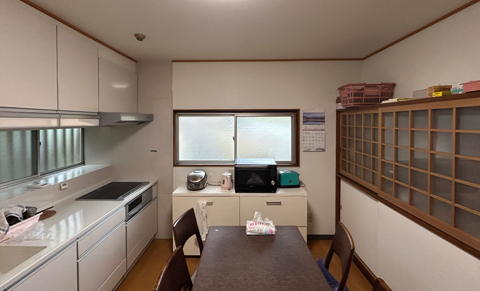 そこで、DK・和室・洋室を区切っていた間仕切り壁を取り除き、一体化した大空間のLDKへとリノベーション。さらに、キッチンまわりにはパントリーを新設し、家事動線に回遊性を持たせることで、使い勝手の良い住まいへと整えました。