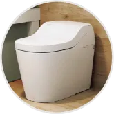便器と便座が一体になったモデルは、見た目がすっきりして手入れも簡単。使いやすさと衛生面を両立。